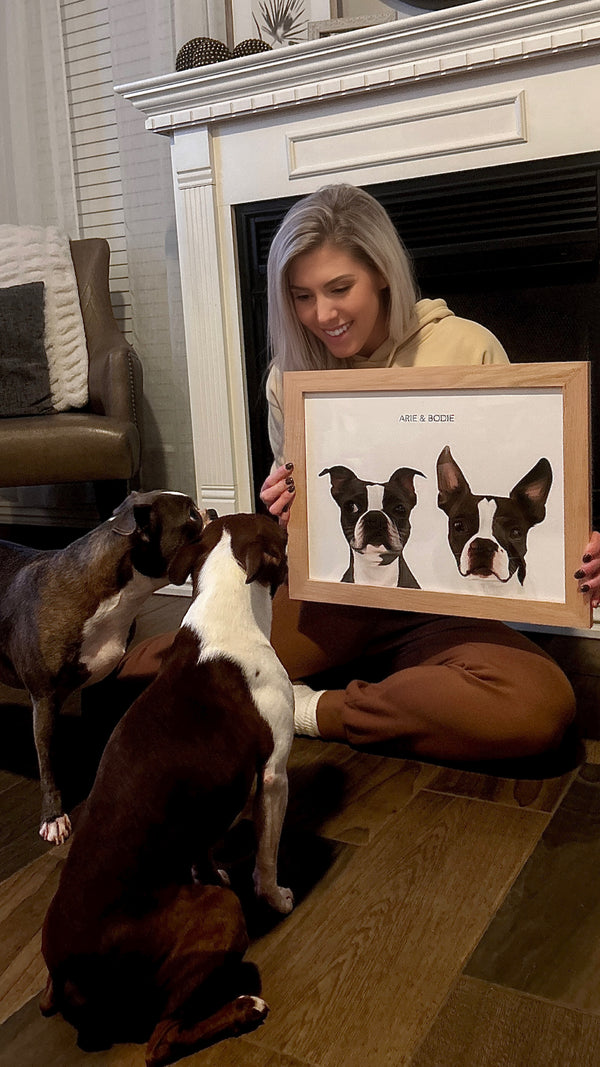 We print your pet illustration on premium archival fine art paper and frame it in sustainable pine wood sourced from West Coast U.S. forests.