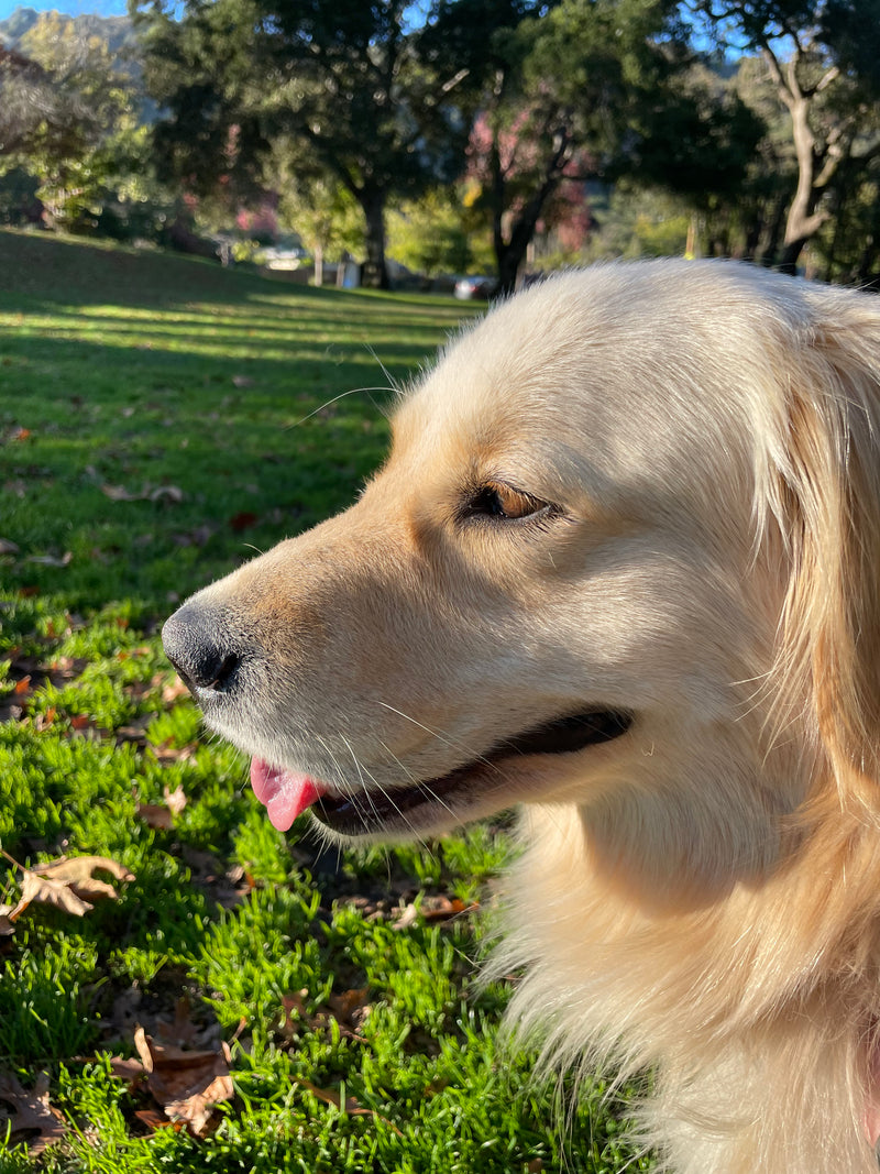 NOT SO GOOD: Photo taken from side, without frontal view of dog's face.